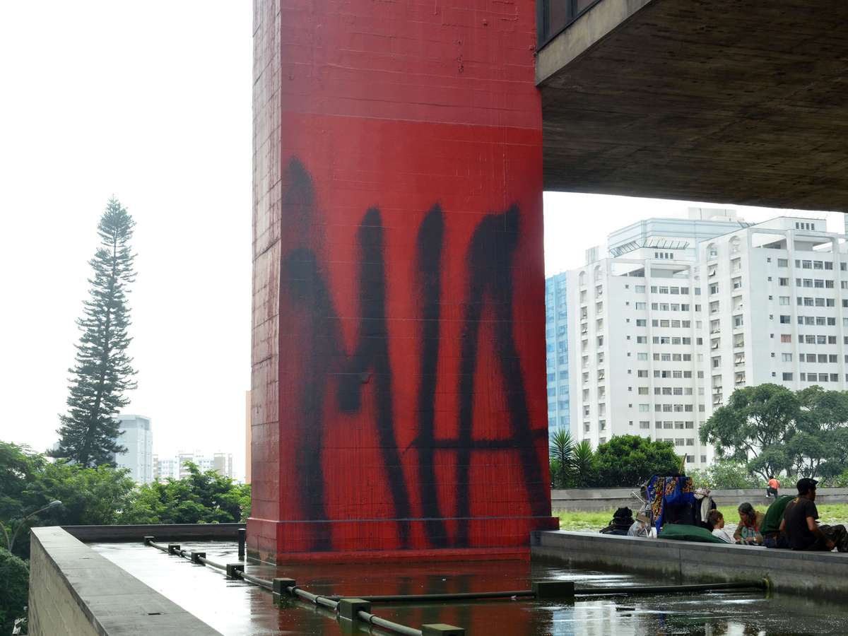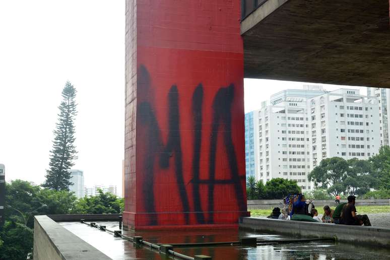 O Museu de Arte de São Paulo Assis Chateaubriand (Masp) amanheceu pichado nesta sexta-feira. Vândalos escreveram nas colunas do lado oposto da bilheteria, na esquina com a rua Plínio Figueiredo.