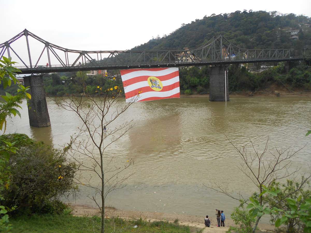 Feita de lona naval do mesmo tipo usado em embarcações a vela, a bandeira é retangular, tem em sua estrutura cabos de aço e mede 30 por 14 metros. Ela foi estendida na alça da ponte de ferro do rio Itajaí na última sexta-feira, como início das comemorações do aniversário de Blumenau, que completou 163 anos na última segunda-feira. A intenção é que a peça permaneça por lá até o próximo dia 15.