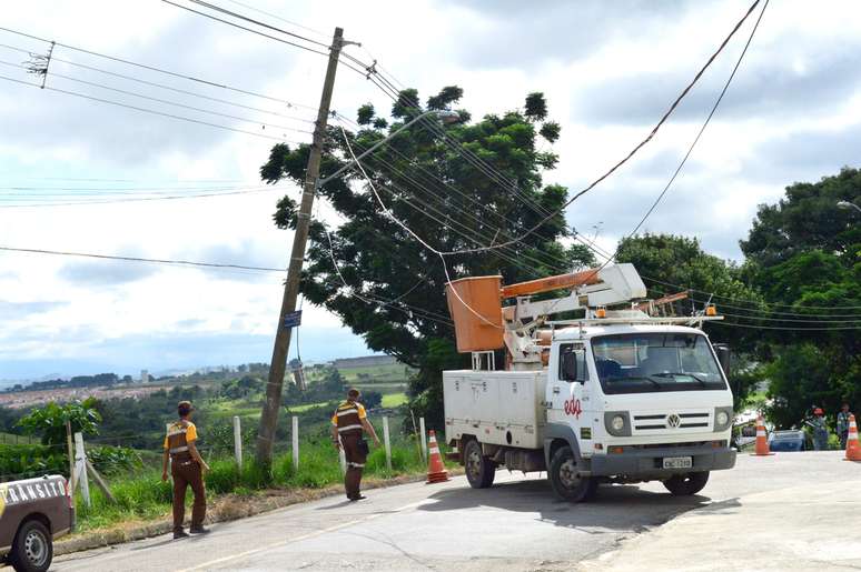 Uma equipe da EDP Bandeirante esteve no local para os trabalhos de reaprumação do poste e recomposição da rede