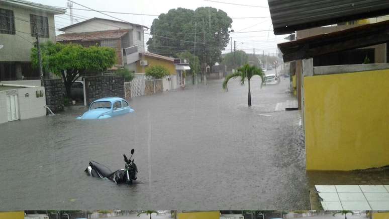 As fortes chuvas que atingem a cidade de João Pessoa, na Paraíba, desde a noite de sexta-feira deixaram várias ruas alagadas e provocaram a queda de um muro na zona norte.