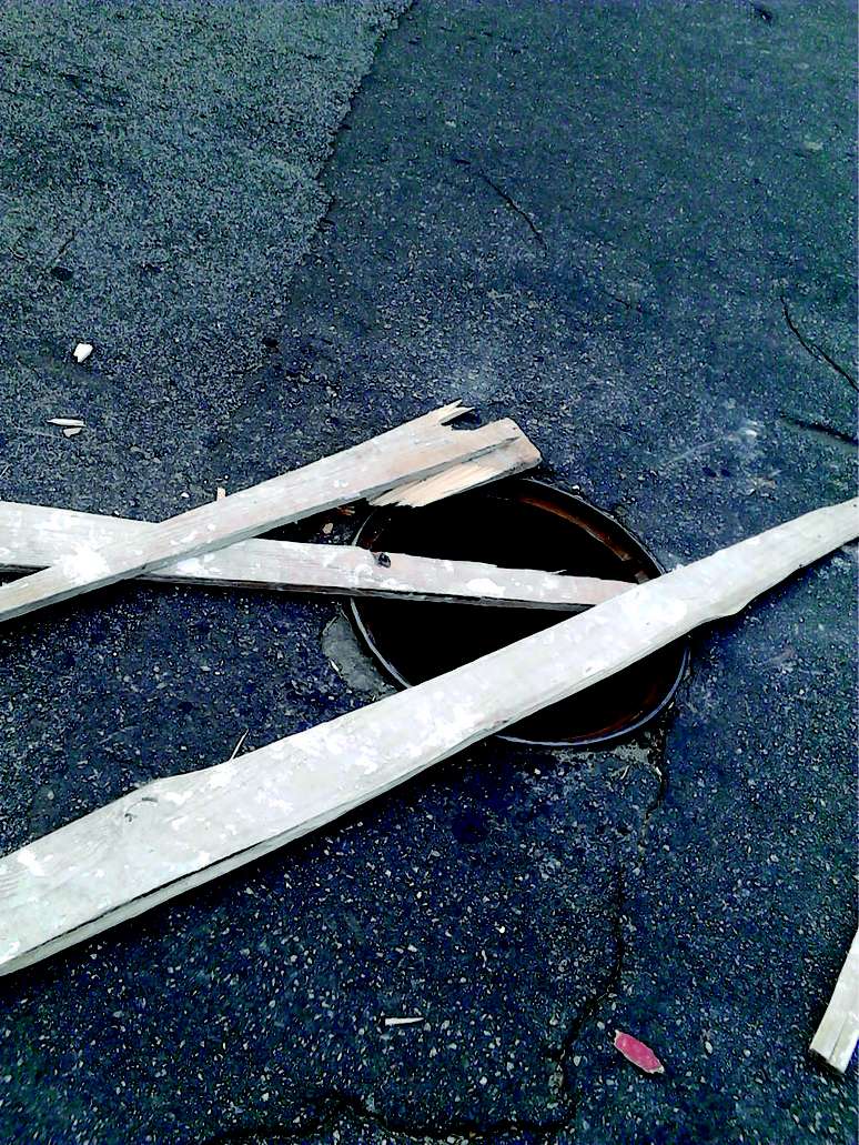 Para evitar acidentes, no dia 30, moradores resolveram demarcar o local com pedaços de madeira e depois substituíram a demarcação improvisada por outra, ao colocarem um cavalete.
