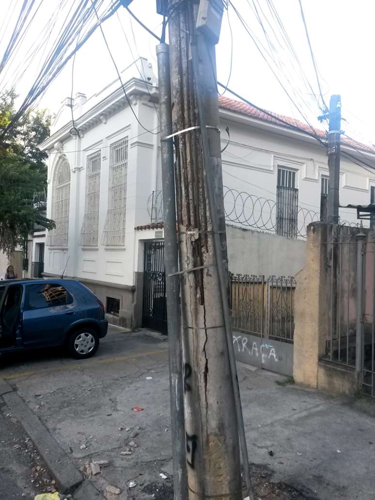 Um poste localizado na altura do número 361 da rua Vitor Meireles, no bairro Riachuelo, zona norte do Rio de Janeiro, tem preocupado moradores da região. A estrutura de concreto está danificada, e é possível observar o material que sustenta o poste.