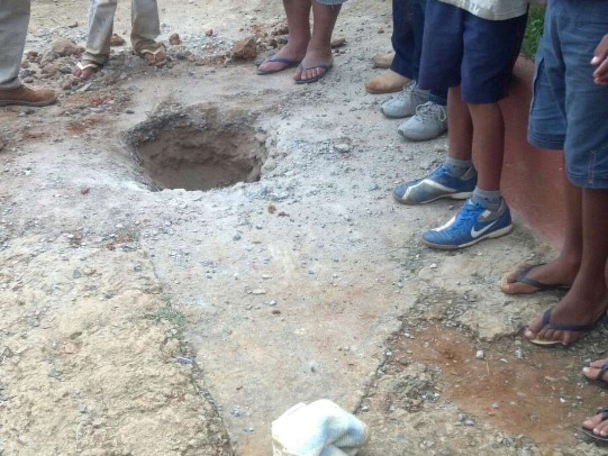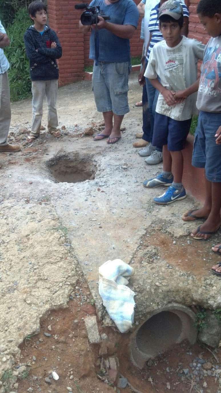 Assustada, a criança chorava bastante e, durante o resgate, os bombeiros tentavam conversar para tentar acalmá-la. Sem espaço para puxar o menino, a corporação precisou quebrar a calçada para concluir o resgate.