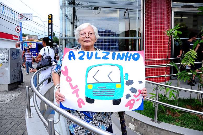 Dezenas de pessoas se concentraram em frente à estação Butantã da Linha Amarela do Metrô, e caminharam com faixas e cartazes pedindo o retorno do ônibus apelidado de "azulzinho"