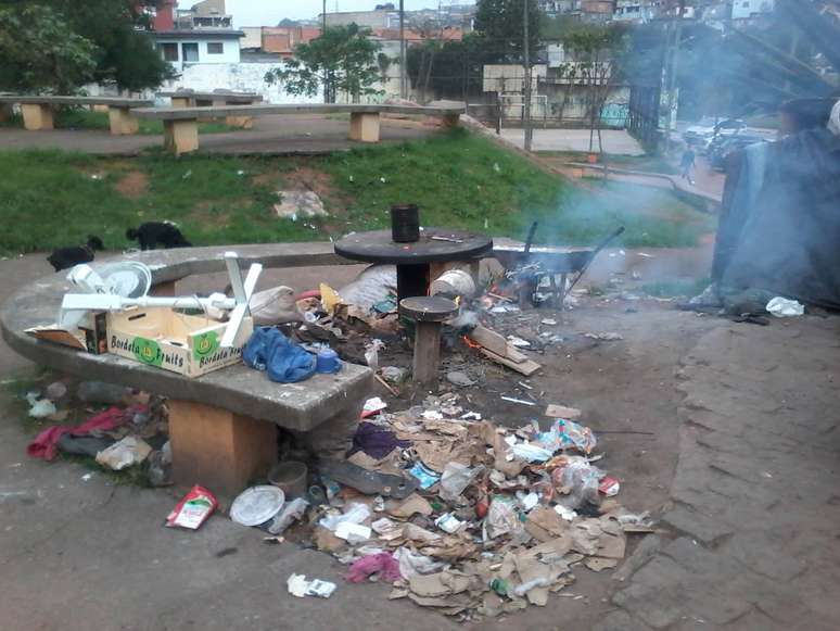 vc repórter: praça vira depósito de lixo e lar de moradores de rua em SP