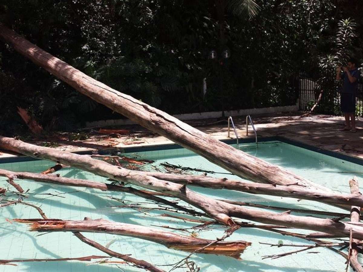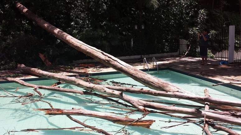 No último domingo, uma árvore caiu sobre a piscina de um condomínio na zona norte de São Paulo