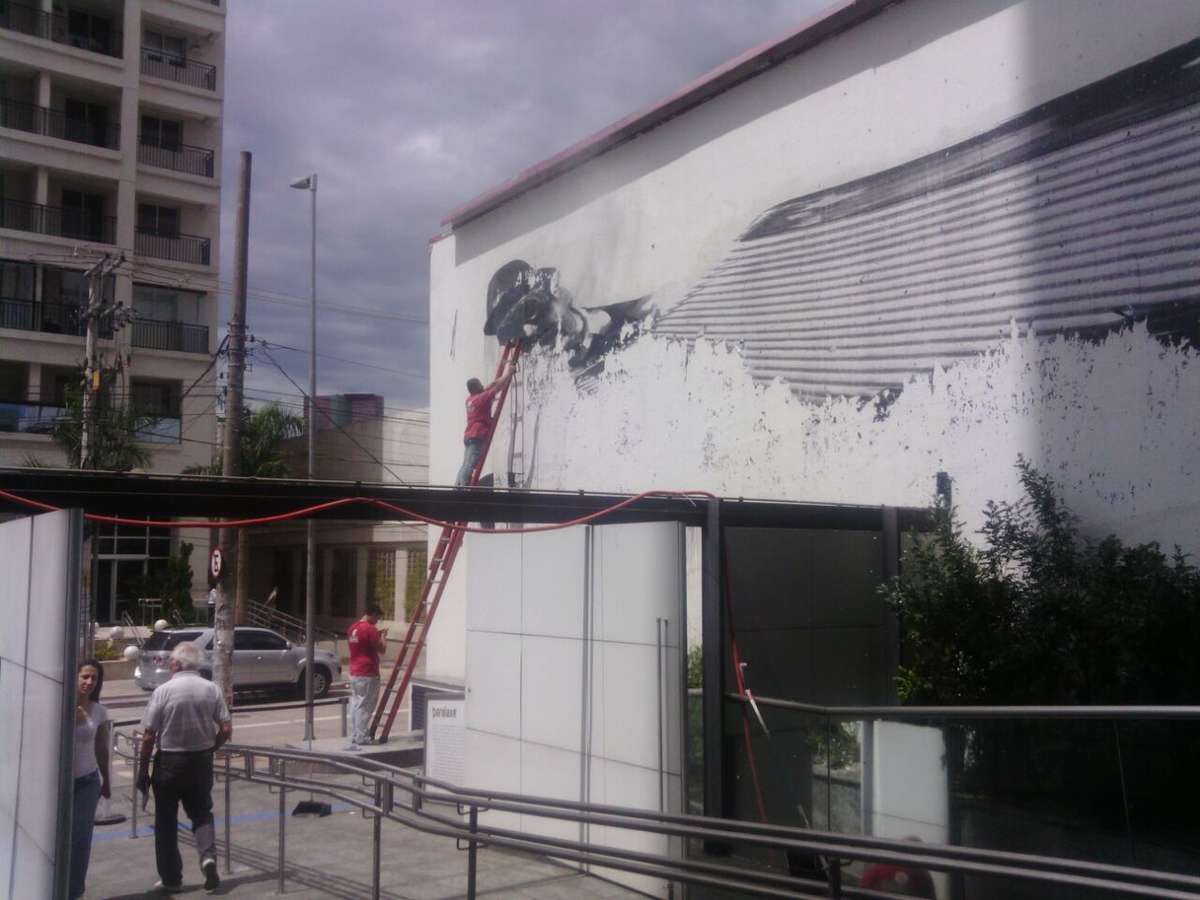 Obra de arte foi removida com jatos de água no Sesc Pinheiros