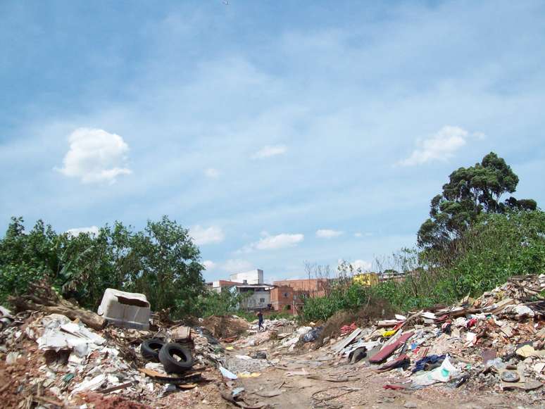 O local, formado por terrenos que deveriam estar cercados, recebe todo o tipo de material, inclusive em grandes quantidades, chegando em caminhões.