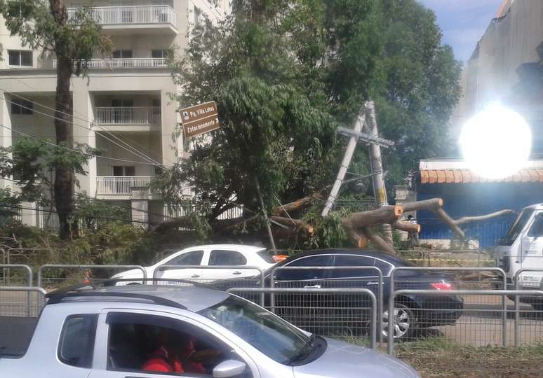 Árvore caiu sobre poste, que se partiu ao meio, na avenida Queiroz Filho, zona oeste de São Paulo, durante temporal de quinta-feira