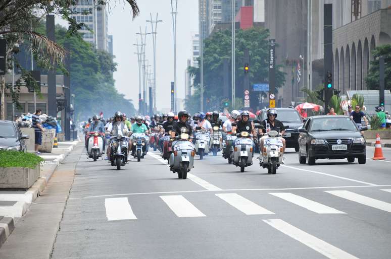 Vespas e lambretas fazem passeio nas ruas de São Paulo