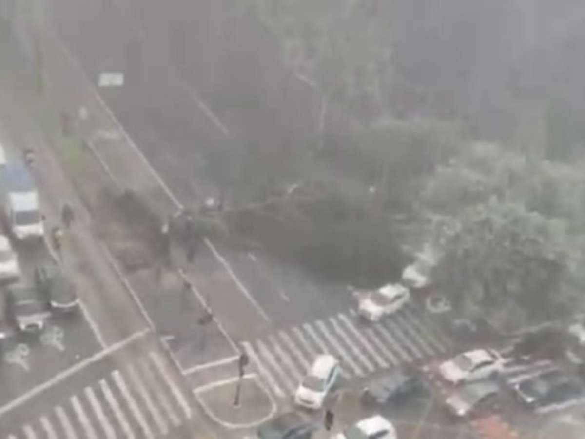 Vídeos da Defesa Civil mostram equipes da administração municipal fazendo o corte da árvore para a retirada da vegetação. Informações preliminares apontavam que não havia vítimas, mas as imagens mostram um veículo, modelo Kwid, em meio aos destroços da árvore.