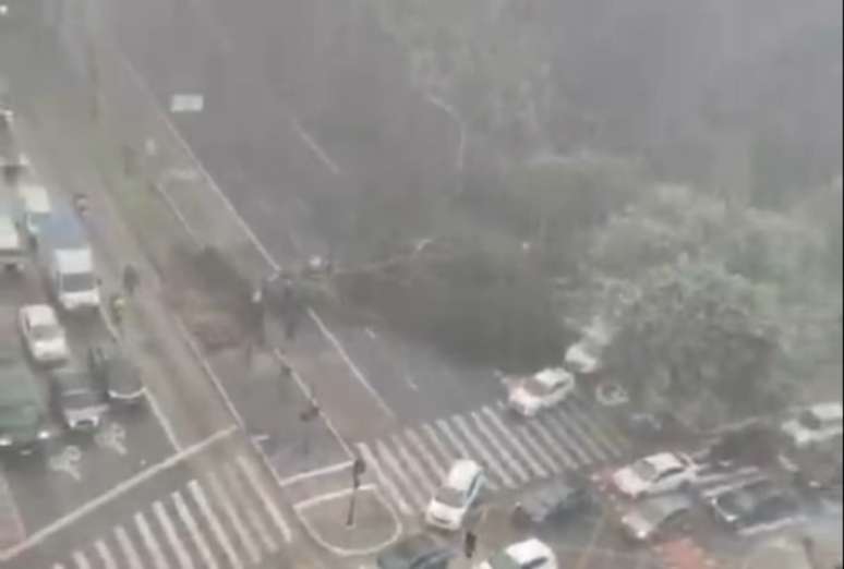 Uma árvore de grande porte caiu na Rua da Consolação, na região central de São Paulo, após a forte chuva que atingiu a capital na tarde desta terça-feira, 27. Um vídeo divulgado pela Defesa Civil mostra que a queda bloqueou toda a via sentido bairro, obrigando os veículos a fazerem um desvio.