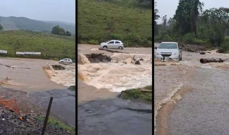Veículo foi surpreendido por enxurrada próxima a ponte no Litoral Norte e resgate contou com a Brigada Militar e o Corpo de Bombeiros.