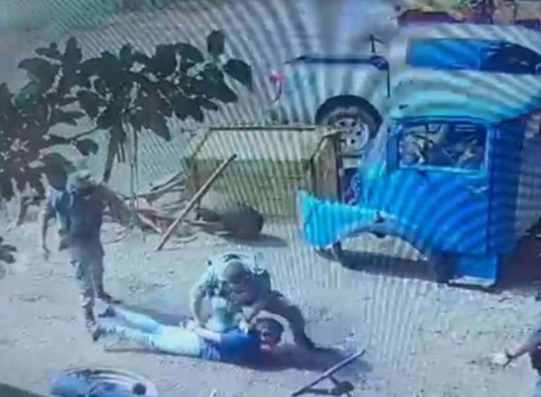 Em sequência, o vídeo mostra o homem, já imobilizado, batendo desesperadamente no chão com as mãos, seguido por uma policial desferindo um chute nele. Durante a condução do homem, ocorre um momento em que ele e um dos policiais militares caem ao chão. Posteriormente, ele foi encaminhado para o registro de ocorrência na delegacia de polícia.