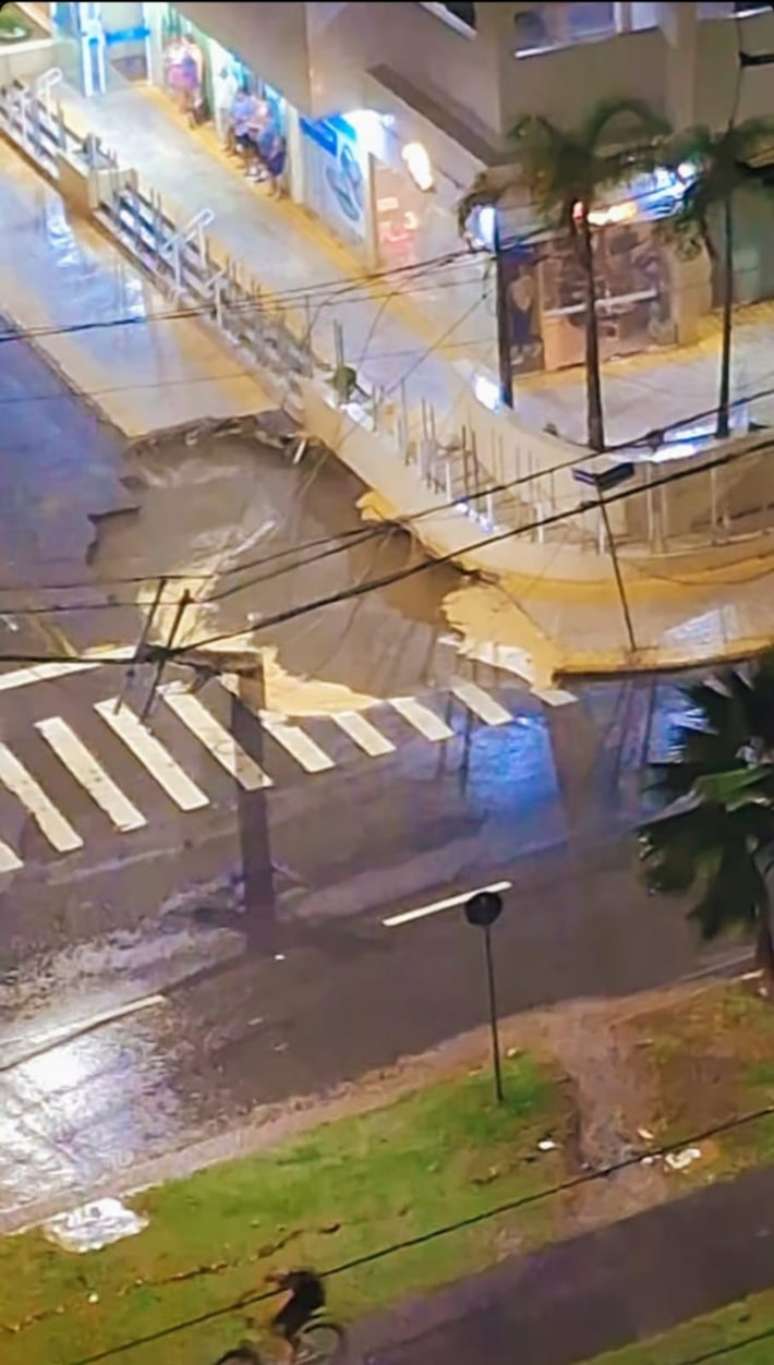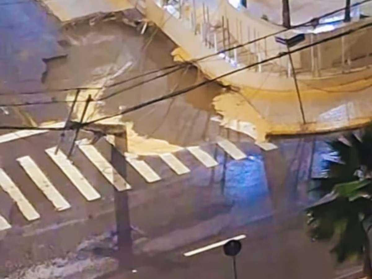 Após uma chuva de forte intensidade, o asfalto cedeu na Avenida Marechal Deodoro, no cruzamento com a Rua Pero Lopes de Souza, colocando em risco a estrutura de um edifício. A Defesa Civil de São Vicente avaliou o local e não houve necessidade de retirada dos moradores.