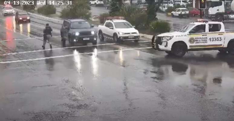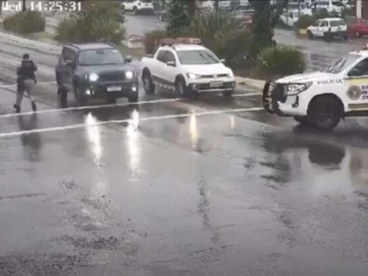 Vídeo impressionante: brigadiano é atropelado por carro em fuga no RS