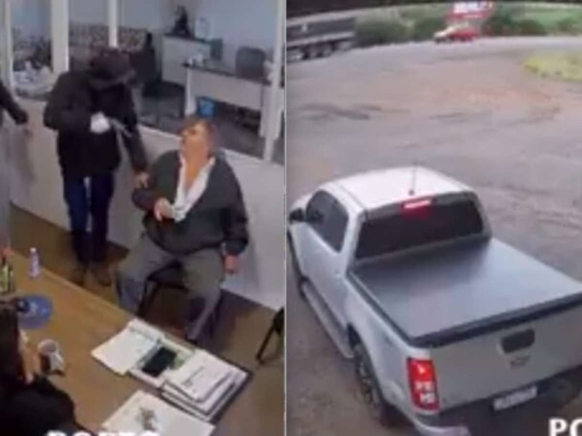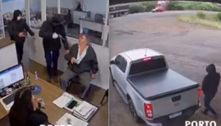 As imagens de videomonitoramento mostram os criminosos se aproximando por uma via lateral, surpreendendo um cliente dentro do local. Sob ameaça com arma apontada à cabeça, ele foi forçado a entregar a chave de uma caminhonete Chevrolet S10.