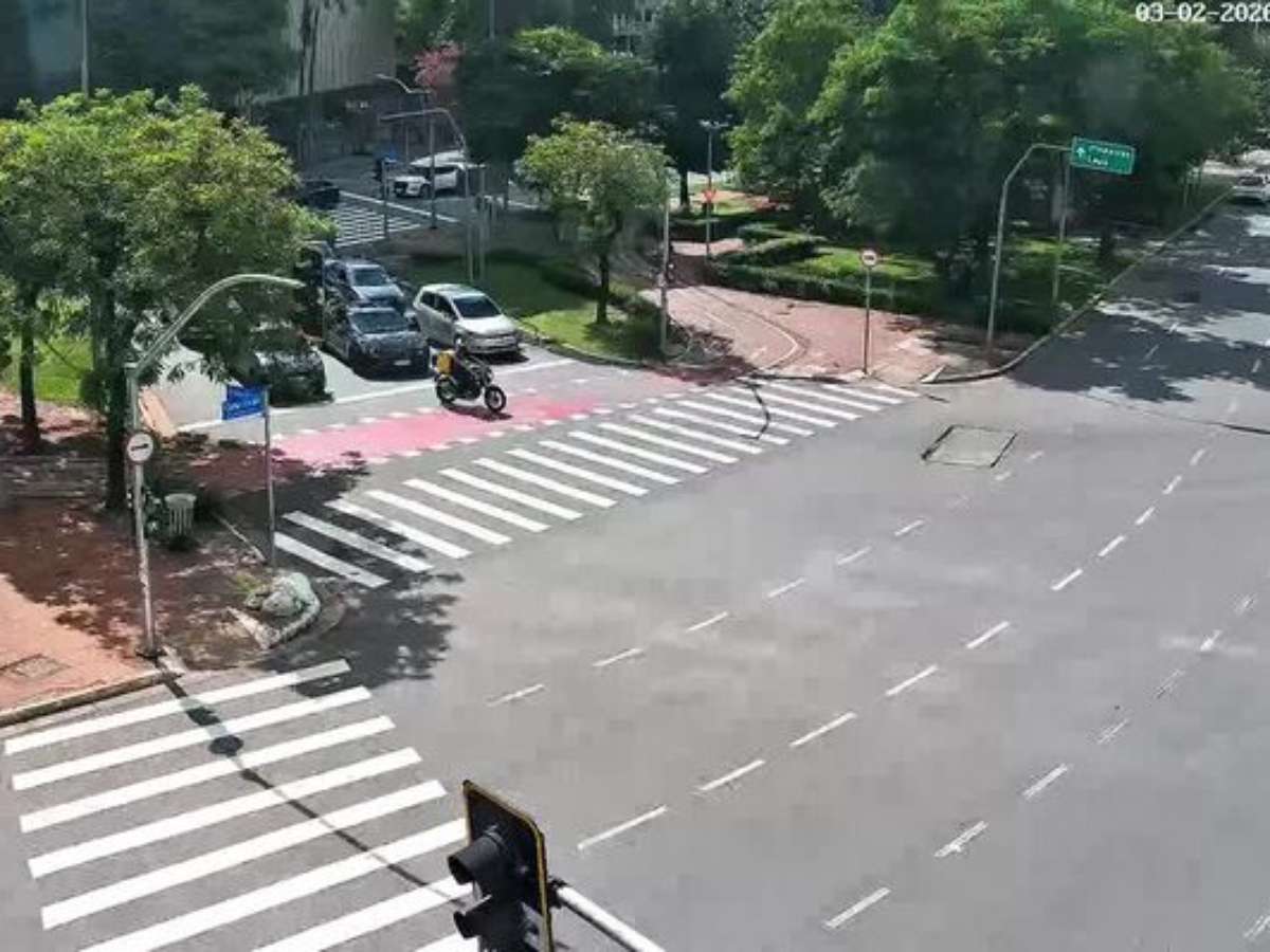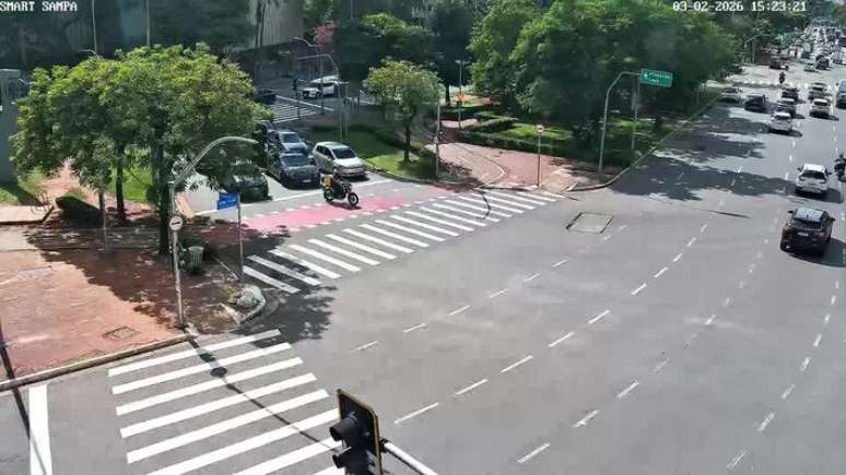 As imagens do Smart Sampa mostram o carro onde estão os suspeitos na Rua Amauri, ao lado da praça Luís Carlos Paraná. O veículo entra na avenida sem demonstrar pressa e para em um semáforo à frente, no cruzamento da via com a Avenida Jardim São Paulo.
