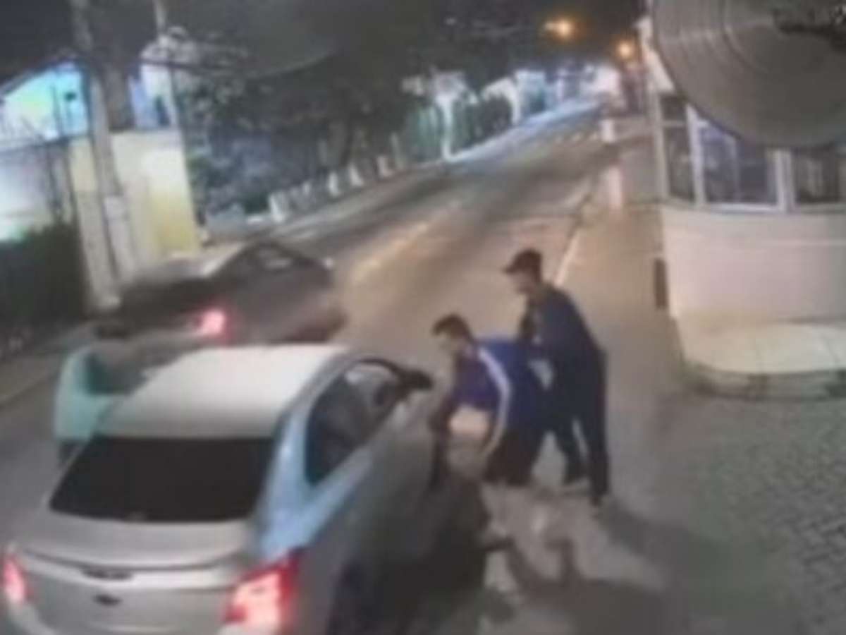 O crime foi flagrado por câmeras de monitoramento e as imagens circulam pelas redes sociais. Pelas imagens, é possível ver um dos passageiros entrando no carro, segurando uma mochila.