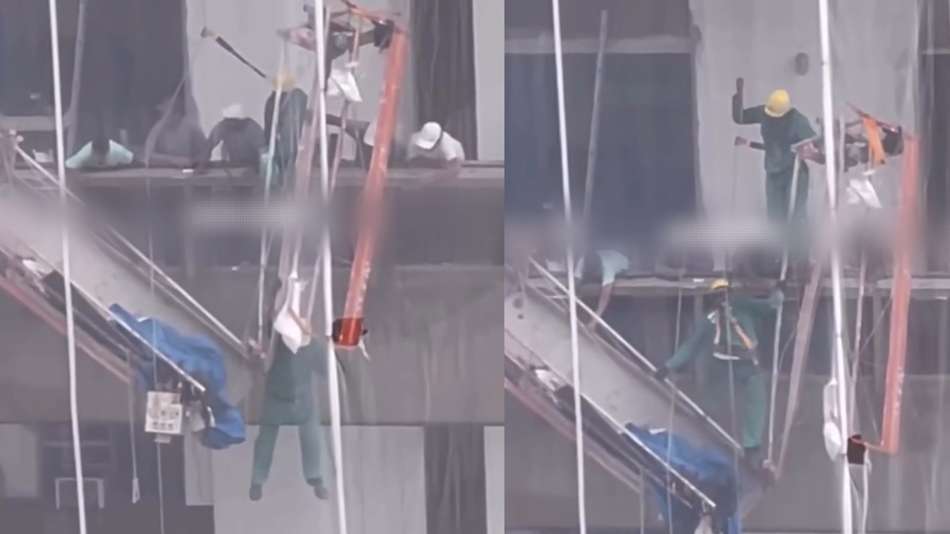 Andaime se solta e operário fica pendurado em fachada de prédio no Rio de Janeiro