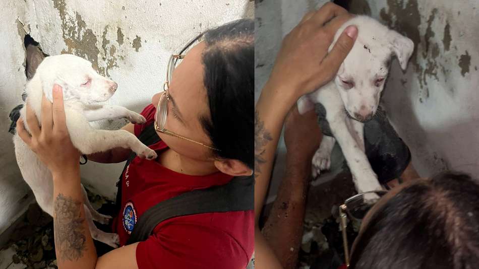 Bombeiros resgatam filhote de cachorro preso em buraco na parede de casa em Manaus