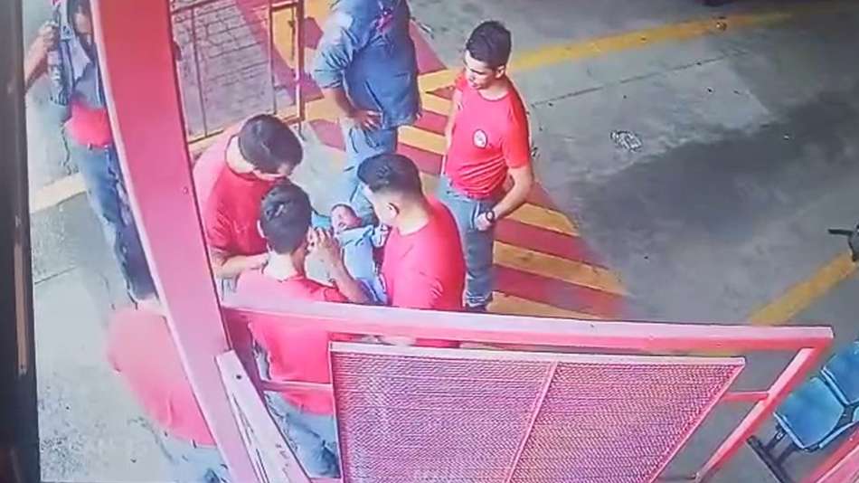 O bebê de 57 dias foi levado pelos pais ao Posto de Bombeiros, no bairro Ana Emília, já em parada cardiorrespiratória. Os agentes militares realizaram manobras de desobstrução das vias aéreas, obtendo êxito e permitindo que o bebê voltasse a respirar. Após o atendimento inicial, a criança foi levada ao Hospital Municipal Universitário de Taubaté para avaliação médica. Imagens: Divulgação/Corpo de Bombeiros