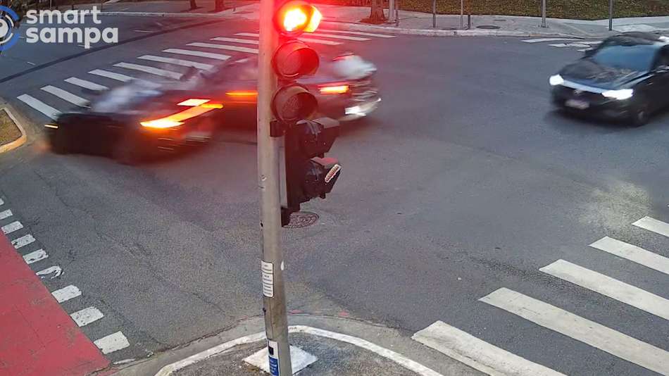 Câmera flagra acidente de Gato Preto e Bia Miranda após carro avançar sinal vermelho