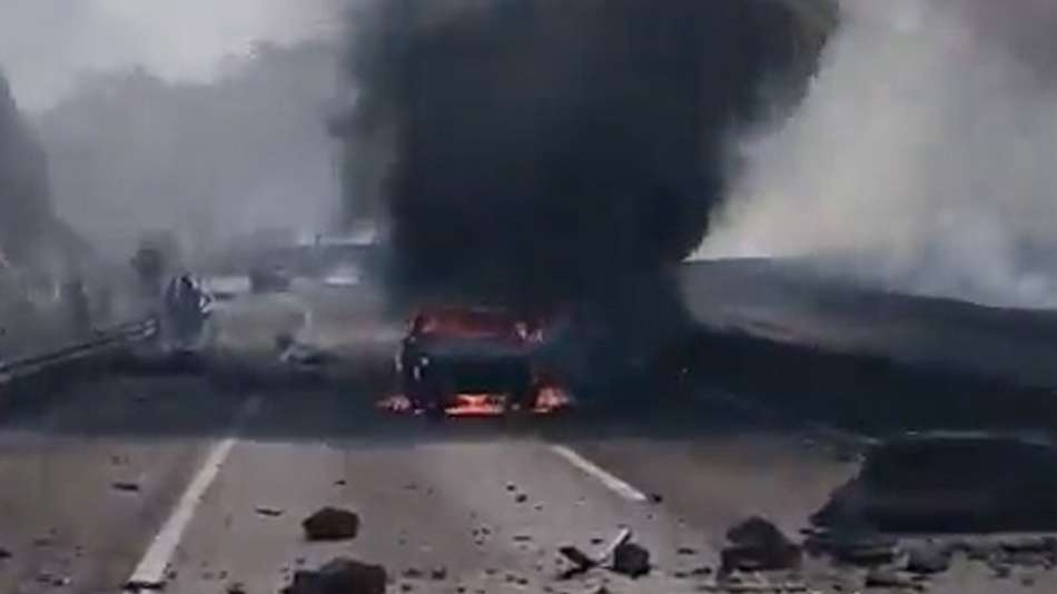 Ao menos duas pessoas morreram e outras quatro ficaram feridas com a explosão. O acidente aconteceu na tarde deste domingo, 19, na altura do km 273, em Barra Mansa. Os dois sentidos da rodovia foram interditados. Imagens: Reprodução/Redes Sociais