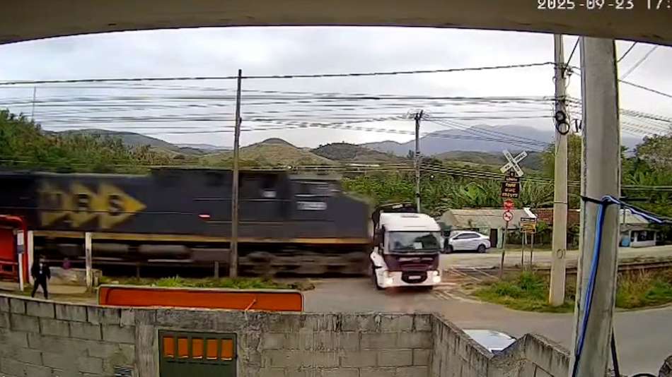 O acidente ocorreu na última terça-feira, 23, no bairro Vila Ipiranga em Vassouras (RJ). Em um vídeo feito por câmera de segurança, é possível ver o momento em que o trem colide com o caminhão e arrasta a cabine. Segundo o Corpo de Bombeiros, dois homens que estavam na cabine ficaram feridos, foram levados ao hospital e já receberam alta. A empresa que administra a rodovia, MRS Logística, afirmou que todos os procedimentos de seguranças foram adotados pelo maquinista e irá apurar o acidente. Reprodução/Rádio RCM FM/Facebook