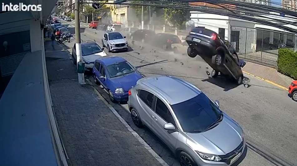 O acidente ocorreu na tarde desta quinta-feira, 14, no bairro Vila Guilherme. Vídeo de câmera de segurança mostra o momento em que a caminhonete capota após o perder o controle na Rua Paulo de Avelar. O veículo atingiu outros dez que estavam estacionados e o motorista ficou preso nas ferragens; ele foi resgatado pelo Samu. Reprodução/Marquinhos Kinder/Facebook