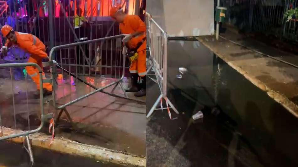 Cano estoura e provoca vazamento de esgoto na frente de camarote da prefeitura de SP no Anhembi