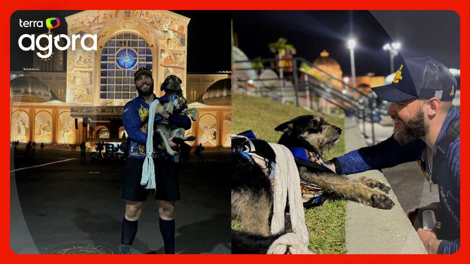 Cãozinho 'abençoado' anda por 150 quilômetros em peregrinação a Aparecida e é adotado por policial