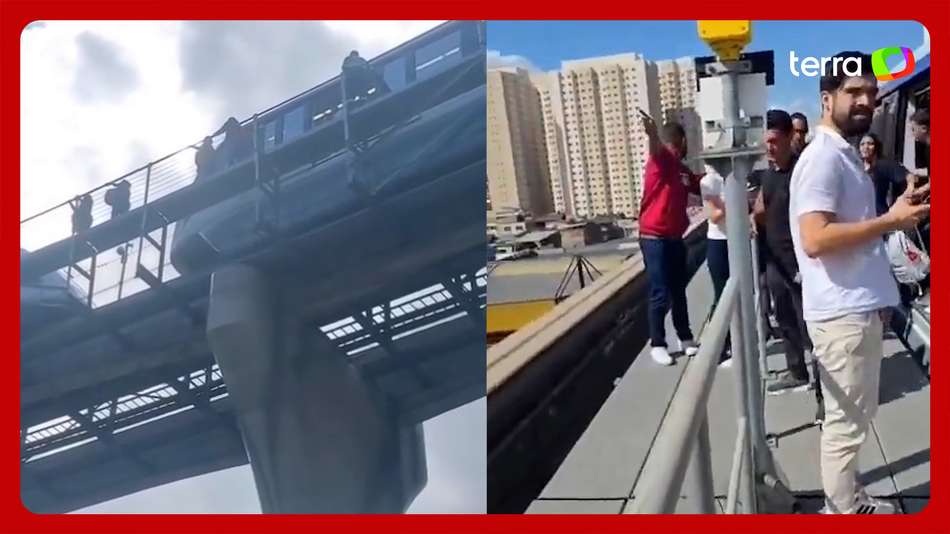 Falha em monotrilho faz passageiros caminharem por passarela em SP