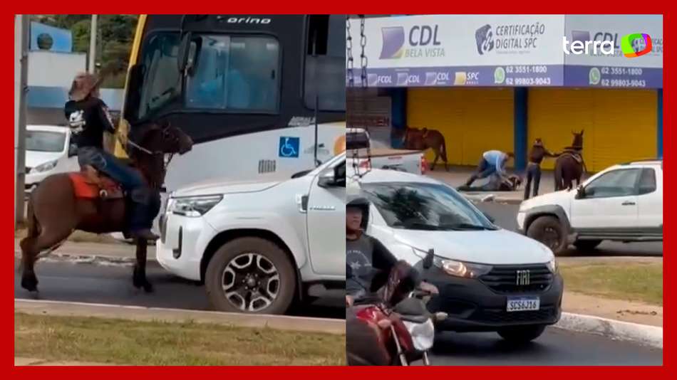 Homem a cavalo e motorista de ônibus brigam no trânsito em Goiás