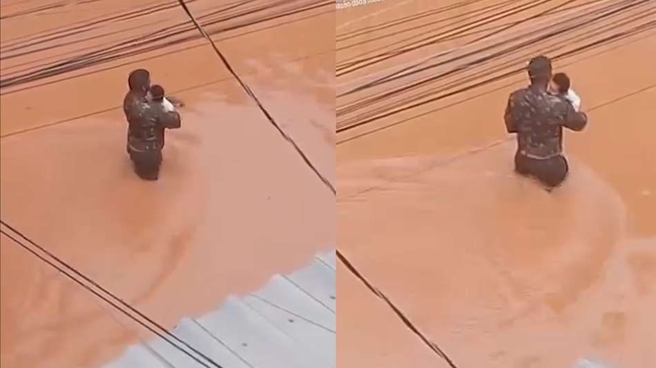 Homem resgata bebê durante enchente em Juiz de Fora (MG); veja. Em meio à tragédia ambiental na Zona da Mata Mineira, com ao menos 40 mortes confirmadas, a cena registrada por um morador repercutiu nas redes sociais. Na gravação, o homem aparece caminhando por uma rua tomada pela água com uma criança de colo no bairro Industrial, um dos mais afetados. Em Juiz de Fora, entre as vítimas fatais, ao menos quatro eram crianças entre 2 e 7 anos de idade, além de adolescentes de 11, 13 e 15 anos. Imagens cedidas ao Terra: Reprodução/jfdepressao/Instagram