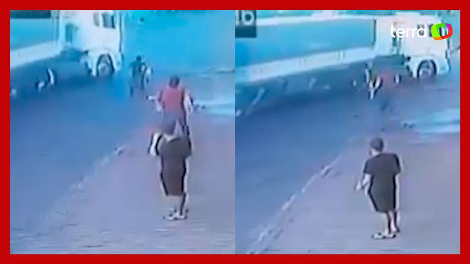 Homem salva criança de ser atingida por caminhão no interior de São Paulo. O caso ocorreu na manhã do último sábado (23), no município de Poloni. Imagem feita por câmera de segurança mostra o menino andando de bicicleta quando o caminhão surge. Antes de ser atingida, a criança foi puxada por João Vitor Massuia, dono do posto de combustíveis onde ocorreu o incidente. Veja vídeo.