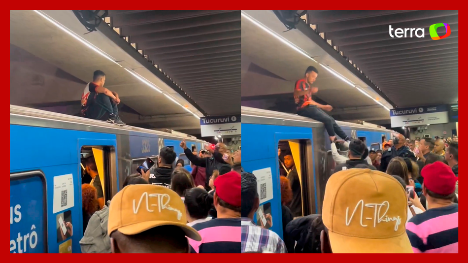 Homem sobe em teto de vagão do Metrô de SP e causa confusão com passageiros