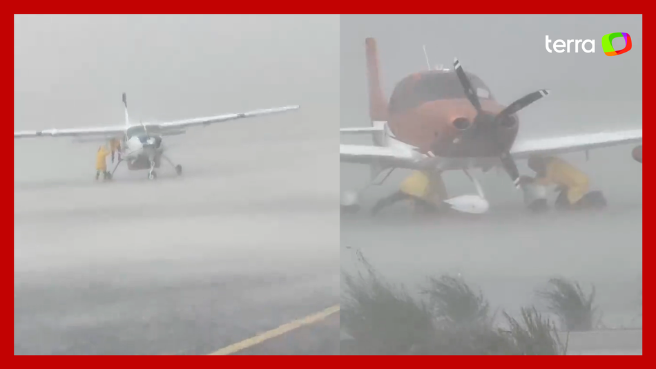 Homens se seguram em aviões durante temporal que derrubou hangar no Aeroporto da Pampulha. Um vídeo que circula nas redes sociais mostra a cena em Belo Horizonte nesta terça-feira, 5. Na gravação, funcionários ficam debaixo das asas dos aviões durante a tempestade. A forte chuva também fez colapsar parte da estrutura metálica de um hangar do aeroporto. Segundo a Defesa Civil, os fortes ventos no local chegaram a 43 km/h durante o temporal.