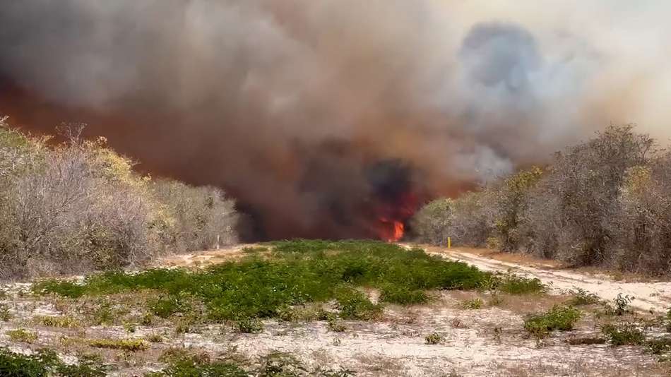 Incêndios de grandes proporções foram registrados em Aracati e Beberibe, no Litoral Leste do Ceará. Em Aracati, as chamas atingem a localidade de Quinderé, onde bombeiros atuam desde a manhã deste domingo. Já em Beberibe, o trabalho de combate ao fogo começou durante a tarde e segue em andamento. Quatro equipes do Corpo de Bombeiros foram acionadas, com apoio de uma aeronave da Ciopaer. Moradores relatam que a fumaça tem atingido comunidades próximas e até áreas litorâneas, como Majorlândia. Segundo relatos, o fogo já dura 15 dias em algumas localidades e preocupa pela proximidade com as residências.