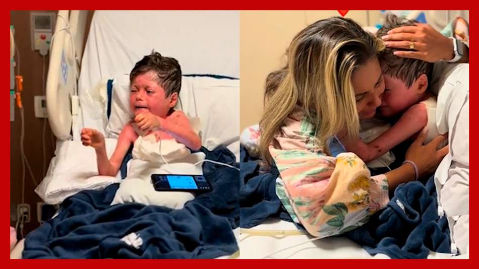 Tayane Gandra compartilhou nas redes momento emocionante em que reencontrou filho após 16 dias de coma. Em vídeo ela explicou que o pequeno tem uma doença rara chamada epidermólise bolhosa, que causa ultra sensibilidade na pele e feridas. Durante tratamento ele passou 14 dias entubado e, no total, 16 em coma. Em registros é possível ver criança emocionada conversando com o pai e chorando ao reencontra a mãe. Veja vídeo acima.