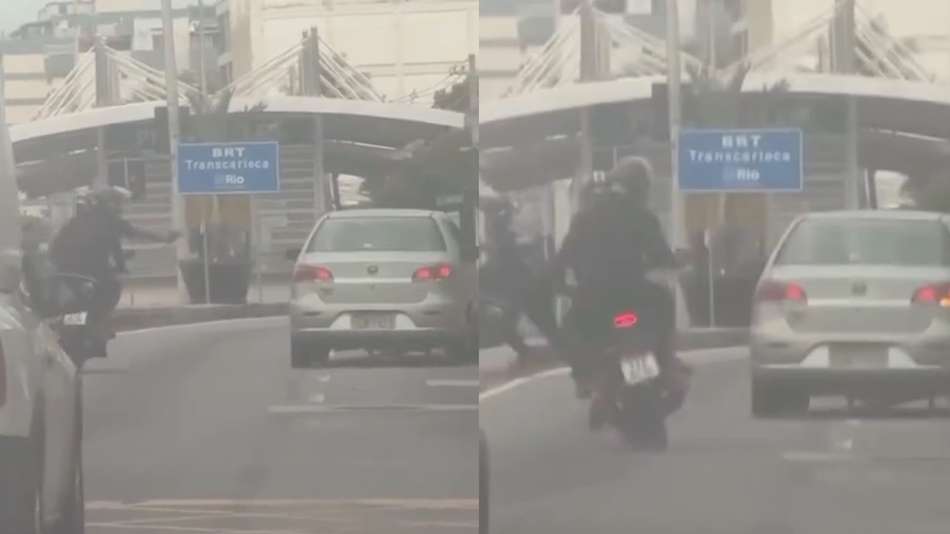 O assaltante tentava roubar uma moto quando um motorista passou e lançou o carro sobre ele; no entanto, um comparsa passou em outra moto e atirou contra o condutor. O caso aconteceu nesta terça-feira, 2, e as imagens repercutiram nas redes sociais. Segundo informações do O Globo, a Polícia Civil investiga o caso, e não há informações de feridos. Reprodução/@noticiaspopularesrj/Instagram