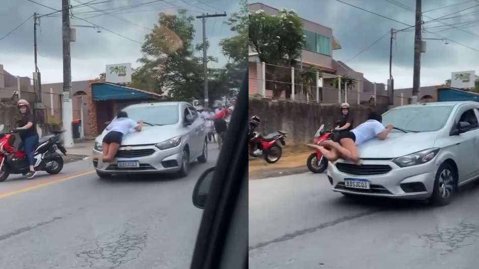 O caso ocorreu na manhã desta segunda-feira, 24, na Rodovia Serafim Derenzi na capital do Espírito Santo. A cena foi registrada durante um protesto feito por familiares do pintor Fernando da Silva Santos, de 32 anos, que foi morto por um policial militar no último dia 17 em uma festa de aniversário. No vídeo, é possível ver a motorista tentando atravessar o bloqueio e arrastando uma manifestante no capô do carro; a vítima não ficou ferida. Reprodução/grandesaopedro/Facebook