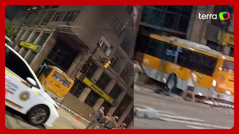 Ônibus invade agência bancária após ser atingido por carro em Porto Alegre (RS). O acidente ocorreu na madrugada desta segunda-feira, 24, na capital do Rio Grande do Sul; o condutor do coletivo, que retornava para a garagem, não se feriu. Já o motorista do veículo que atingiu o ônibus quebrou um dos pés, segundo informou a RBS TV, afiliada da TV Globo. Reprodução/Redes sociais