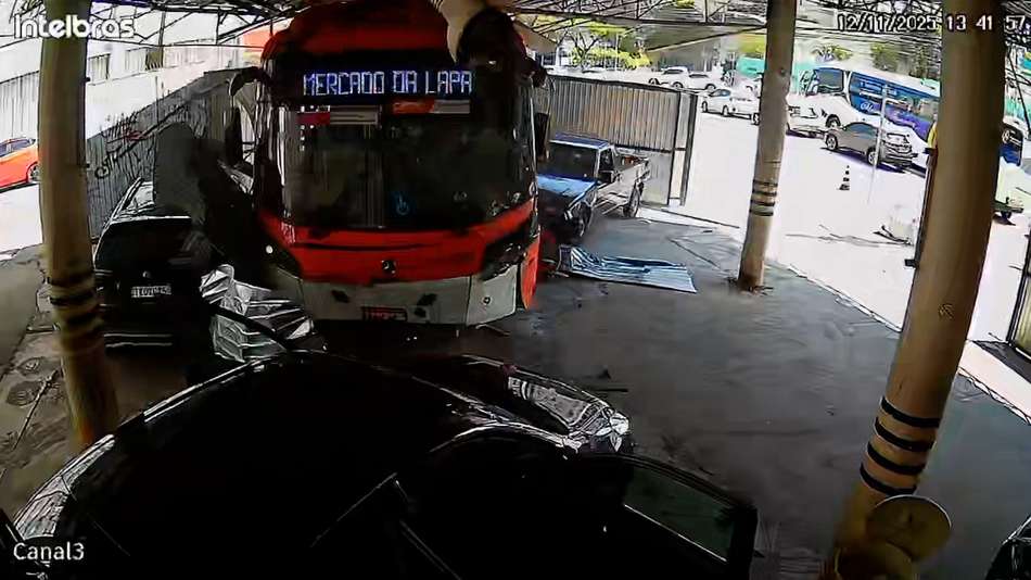 Ônibus perde o controle e invade estacionamento após motorista passar mal em SP