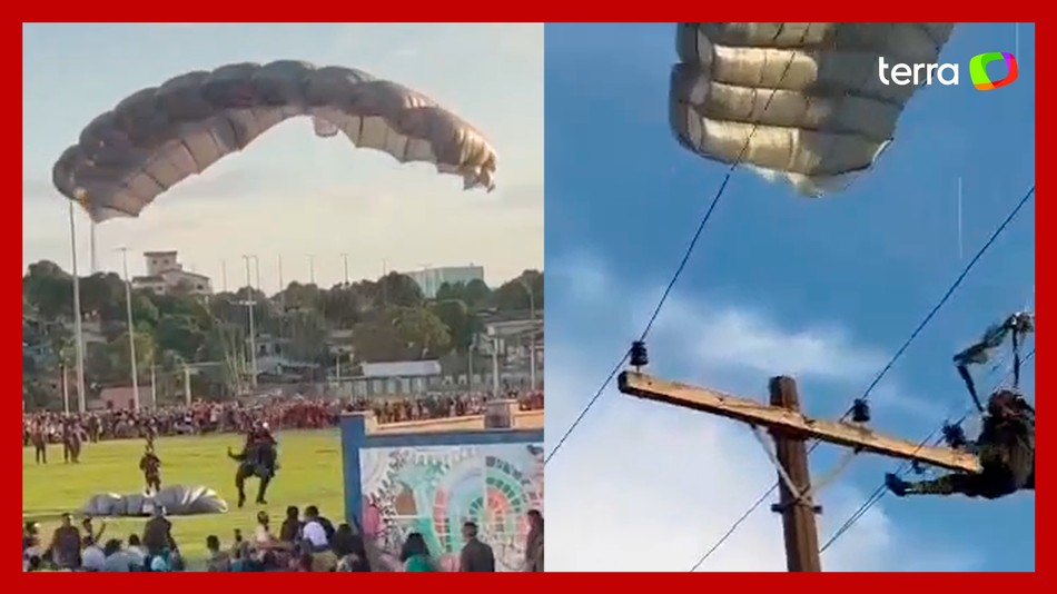 Paraquedista atinge mulher em evento de aviação em Roraima. O incidente ocorreu no domingo, 9, no 'Domingo Aéreo 2023', em Boa Vista. No vídeo, ele ultrapassa a área reservada e se aproxima de uma aglomeração. Uma mulher que acompanhava o evento é atingida em cheio pelo paraquedista. Em outro vídeo, um dos praticantes também passa próximo de uma rede elétrica. Ele aterrissa próximo a carros estacionados e do público da atração.