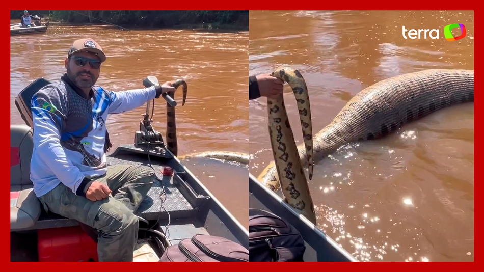 Pescador encontra sucuri de 7 metros boiando em rio no MS. A cena foi registrada no Rio Dourados, em Deodápolis, no domingo, 22. Nas imagens, a serpente parece estar com uma presa em seu corpo. "É uma pena ver isso na natureza", lamenta Antônio Oliveira no vídeo.