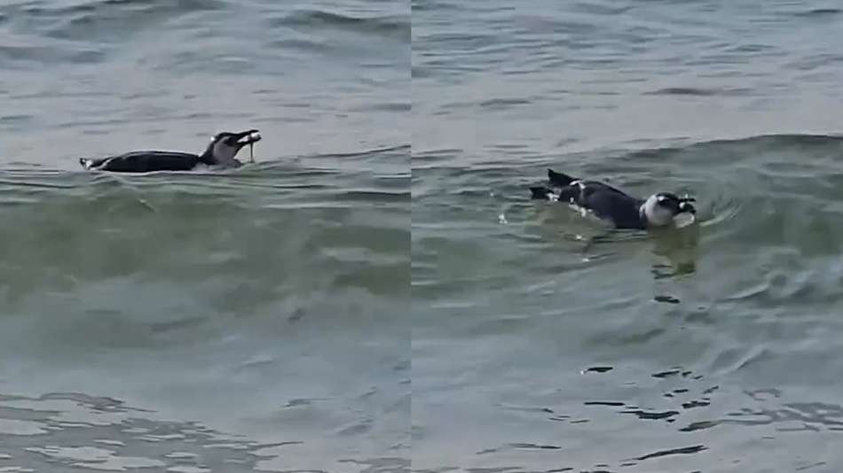Pinguim é flagrado nadando em praia na Zona Sul do Rio; veja