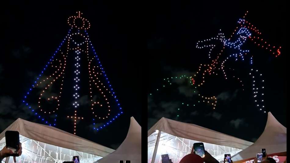 Show de drones encanta fiéis na Alvorada de São Jorge, no Rio de Janeiro
