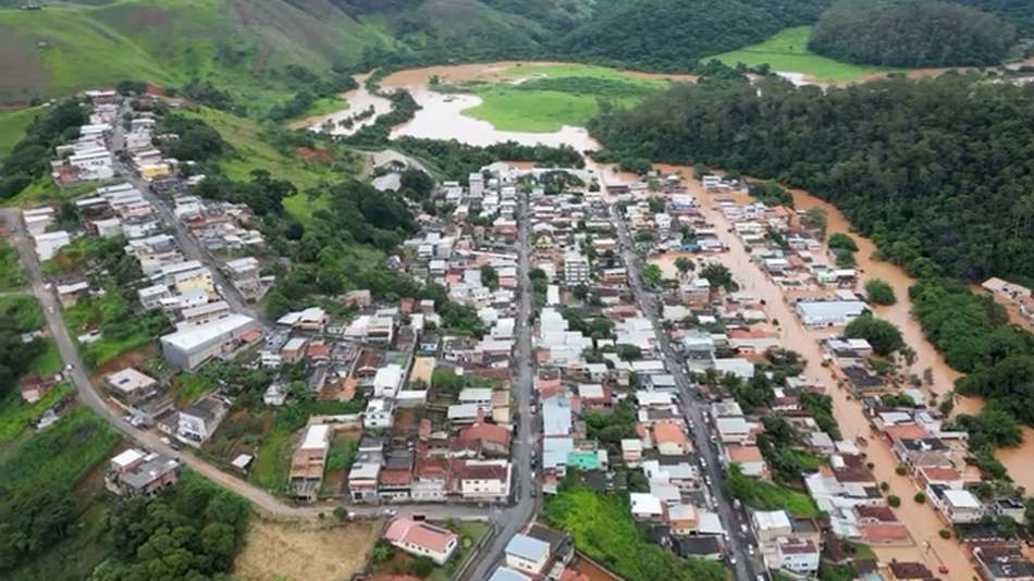 Vídeos aéreos mostram cidade ao lado de Juiz de Fora completamente coberta pela água