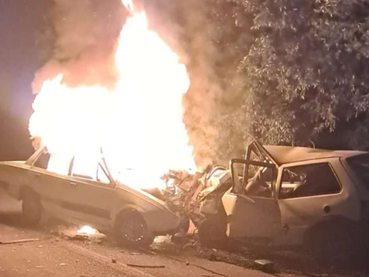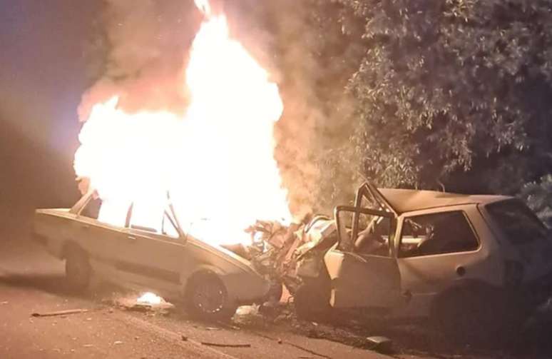 Com o impacto, um dos veículos pegou fogo. Todas as vítimas morreram no local